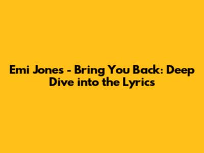 Emi Jones - Bring You Back: Deep Dive Into The Lyrics