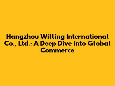 Hey guys! Let's talk about Hangzhou Willing International Co., Ltd., a company that's making waves in the world of international trade. This article is your go-to guide to understanding everything about them, from what they do to how they're making an impact. We'll break down the essentials, making sure you've got a solid grasp of who they are and their role in the global market. Ready to dive in? Let's go!