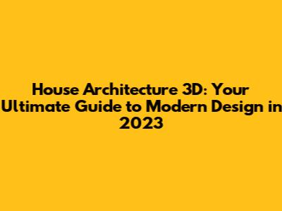 House Architecture 3D: Your Ultimate Guide to Modern Design in 2023