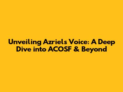 Unveiling Azriel's Voice: A Deep Dive Into ACOSF & Beyond