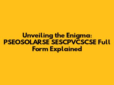 While I can't provide the complete definition for PSEOSOLARSE SESCPVCSCSE full form directly, I can provide resources that can help you uncover its meaning. Because I am an AI, I can't search through private or proprietary databases. So, here are some general strategies for finding the information you're looking for.