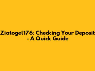 Ziatogel176: Checking Your Deposit - A Quick Guide
